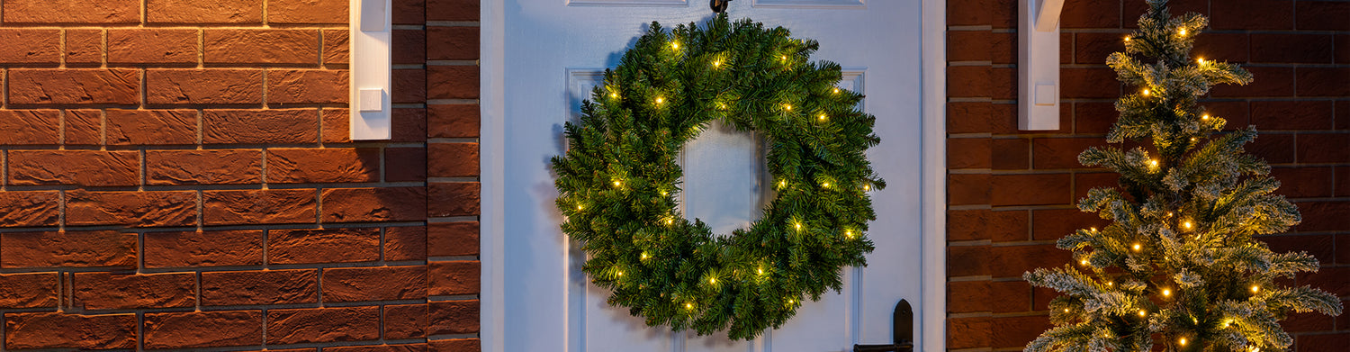 When working with uniquely shaped wreaths, cluster lights are your best friend. Their compact size makes them easy to manoeuvre around any shape to fully illuminate your wreath. Alternatively, choose a pre-lit LED or iridescent wreath. With their bright, sparkly glow, they'll make your home look like a winter wonderland!
