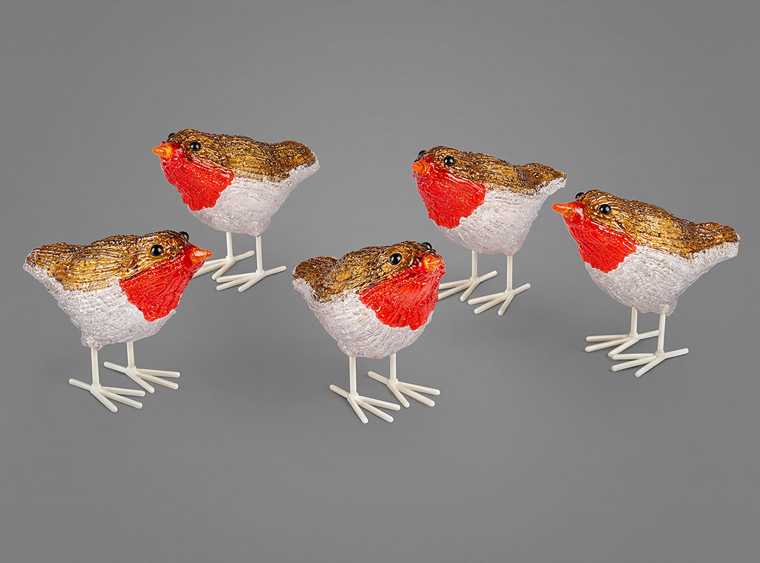 Acrylic Light Up Robins (Set of 5)